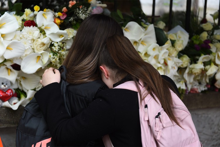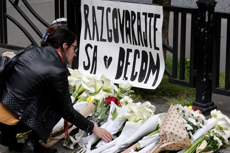 Građani od jutros pale svijeće i polažu cvijeće ispred škole, kao i na Cvetnom trgu. Hiljade ljudi odaje počast ubijenima u osnovnoj školi "Vladislav Ribnikar".