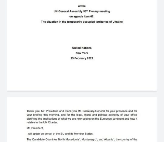 Bosna i Hercegovina se, na sjednici Generalne skupštine UN, pridružila Izjavi Evropske Unije o situaciji u Ukrajini.