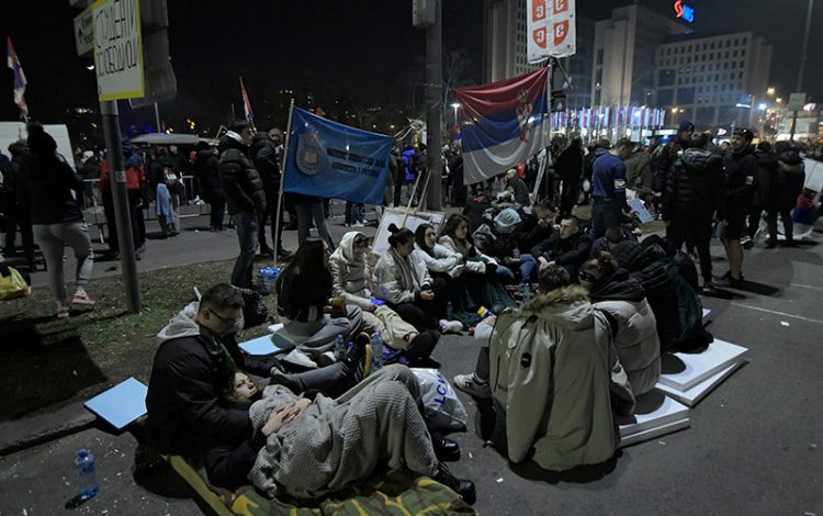 Blokada Mosta slobode trajala je cijelu noć, a studenti su spavali na ulici, u šatorima ili na stiroporu, piše Blic.