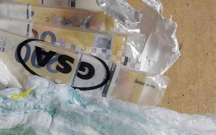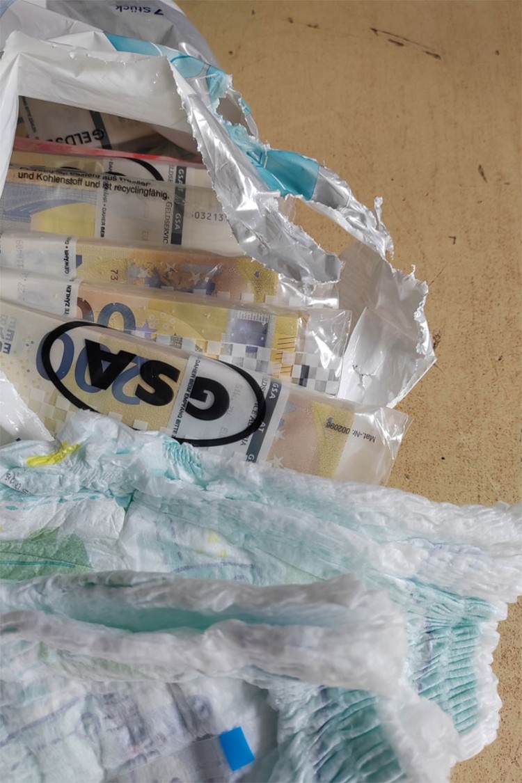 Ubrzo je utvrđeno da se među pelenama nalazi kesa sa 130.000 evra, kao i koverat sa 5.500 dolara.