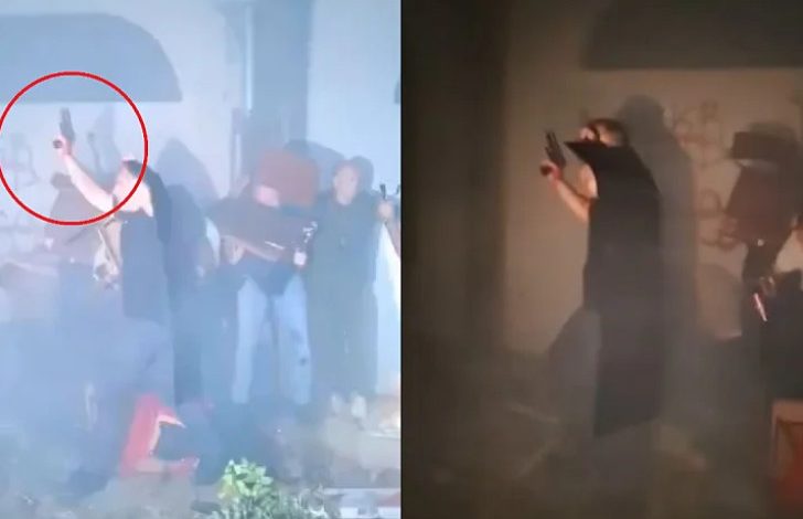 Kamere su zabilježile i muškarca za kojeg se tvrdi da je iz zgrade SNS-a izašao držeći pištolj. To je izazvalo paniku među prisutnima, a u prenosu uživo televizije N1 Srbija moglo se čuti kako neko iz mase upozorava da je oružje izvučeno.