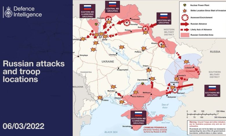 Ministarstvo odbrane Velike Britanije na Twitteru je objavilo novu mapu napada ruske vojske na Ukrajinu. "Nastavlja se ničime isprovocirana i ilegalna invazija Ukrajine", stoji u objavi Ministarstva.