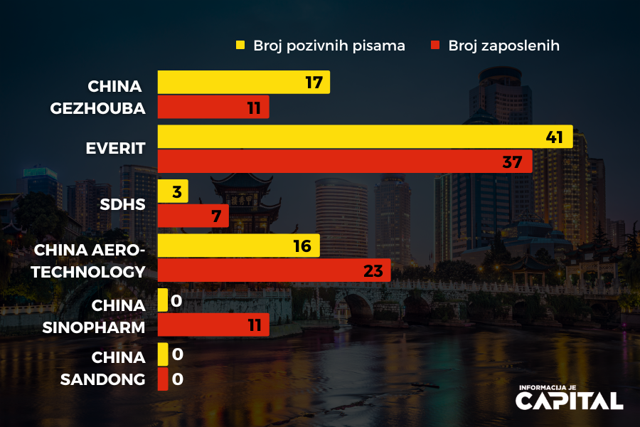 – On the basis of the invitation letter of the legal entity “SDHS”, three stays were approved for Chinese citizens (seven employees), on the basis of the invitation letter of “China National Aero-Technology International Engineering Corporation” – Business unit Foča, 16 temporary stays were approved (23 employees), and based on the caller “China Sinopharm”, there are no approved temporary stays for Chinese citizens (11 employees) – it is stated in the response of the Service for Affairs with Foreigners.