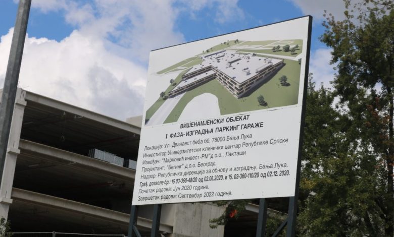 Parking garaža kod Univerzitetsko – kliničkog centra u Banjoj Luci za čiju je izgradnju izdvojeno 35 miliona maraka neće biti završena krajem ovog mjeseca kako je to predviđeno ugovorom.