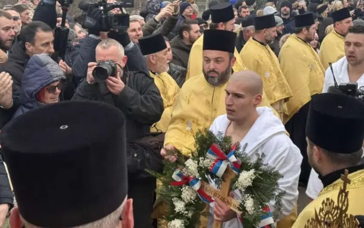 Veliki broj vjernika pridružio se Bogojavljenskoj litiji od Hrama Hrista Spasitelja prema Gradskom mostu gdje je uslijedilo vodoosvećenje i plivanje za Časni krst.