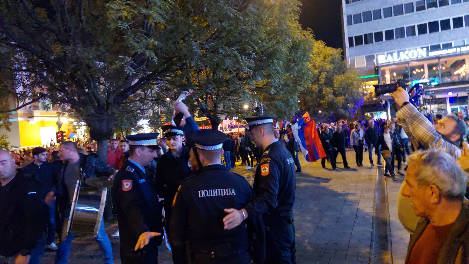 Kolona na čelu sa Miloradom Dodikom je prošla pored Davora kojeg su opkolili četvorica policajaca.