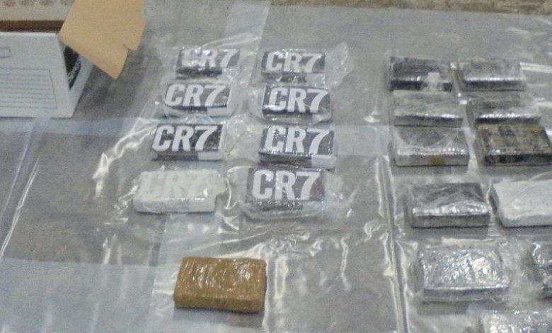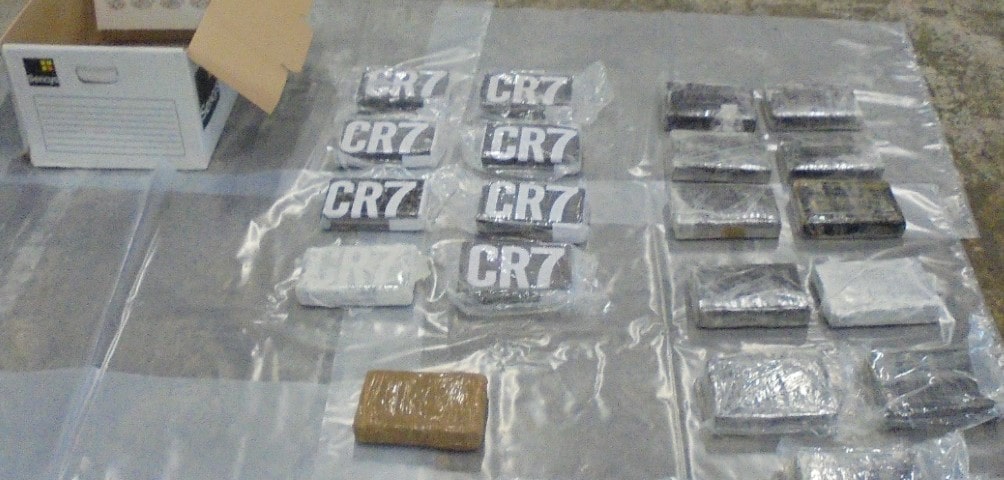 Interesantno je da na paketima kokaina stoji natpis „CR7“  (na slici) koji je zaštitni znak i fudbalske zvijezde Kristijana Ronalda.