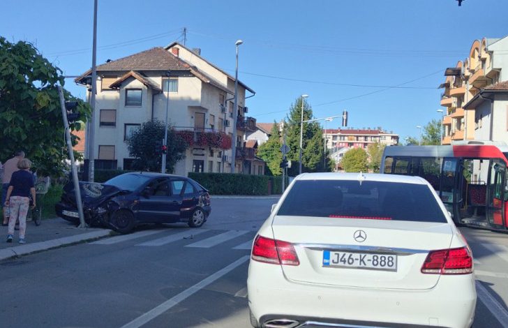 Sudarili su se kombi vozilo prevoznika „Pavlović turs“ i automobil „fiat“ koji je nakon sudara udario u semafor.