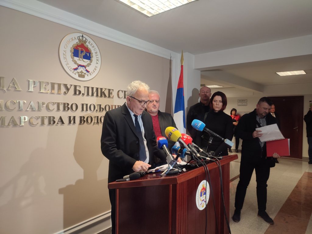 Ministar poljoprivrede, šumarstva i vodoprivrede RS Savo Minić kazao je da su obavljeni razgovori sa oba sindikata, te da je usaglašeno da bilo kakav vid pritiska ili štrajk ne može doprinijeti rješavanju situacije, već može imati političke konotacije.