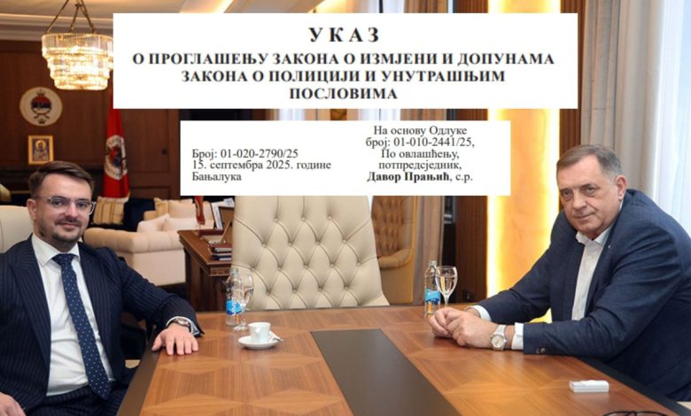 Potpredsjednik Republike Srpske Davor Pranjić potpisao je ukaz o proglašenju Zakona o izmjenama i dopunama Zakona o policiji i unutrašnjim poslovima, čime je ozvaničeno da je Milorad Dodik na njega prenio ovlaštenja nakon što mu je CIK BiH na osnovu pravosnažne presude Suda BiH oduzeo mandat predsjednika Republike Srpske.