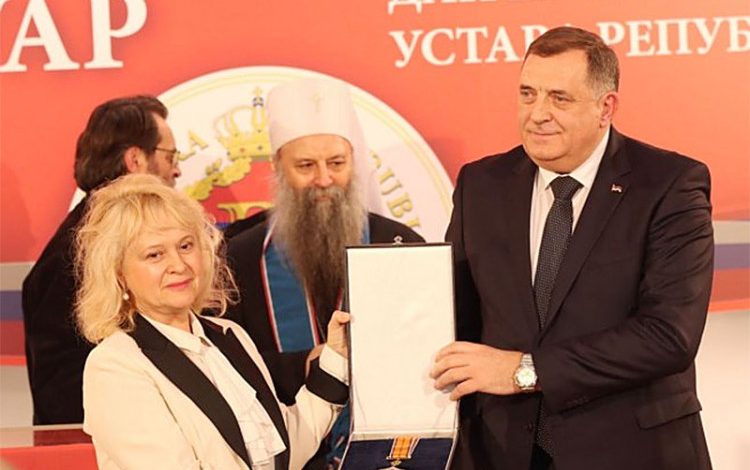 Predsjednik Republike Srpske Milorad Dodik uručio je večeras orden Republike Srpske na lenti Njegovoj svetosti patrijarhu srpskom Porfiriju, a orden časti sa zlatnim zracima poznatom srpskom i svjetskom endokrinologu doktorki Svetlani Vujović.