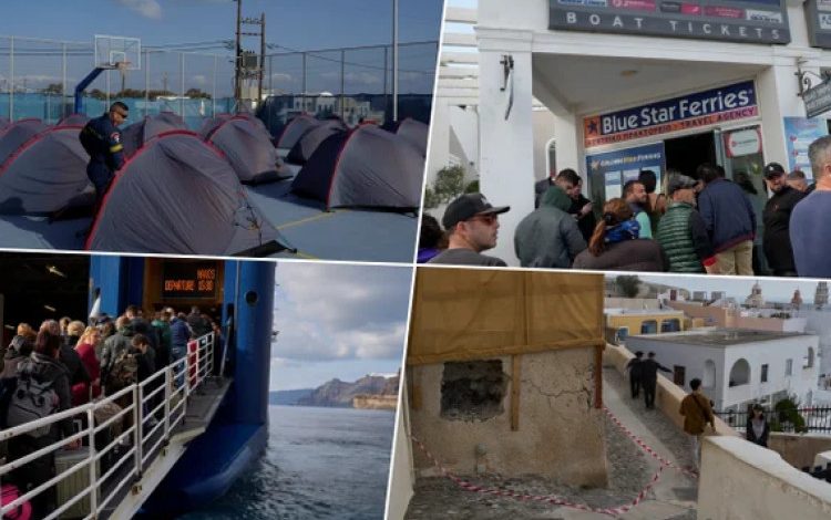 Veliki broj turista i stanovnika napustio je ostrvo trajektima, dok su se drugi trudili da se što prije ukrcaju na avion prije nego što dođe do novih potresa.
