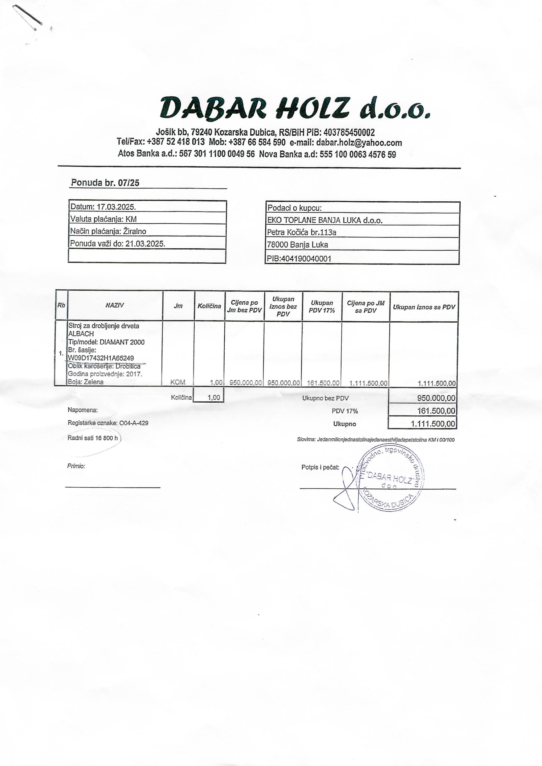 Sa druge strane „Dabar Holz“ jedini dostavlja ponudu koja liči na jedan poslovni dokument.