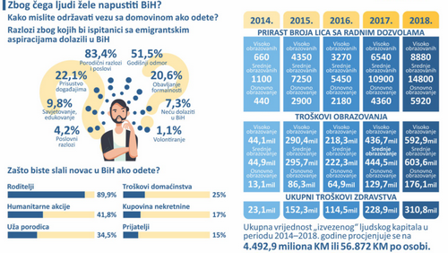 Prema podacima pomenute studije 97,5 posto ispitanika bi u inostranstvo vodilo djecu, 91,2 ne bi željelo da se njihova djeca vrate u Bosnu i Hercegovinu i 99 posto smatra da je kvalitet života djece bolji u inostranstvu nego u Bosni i Hercegovini.