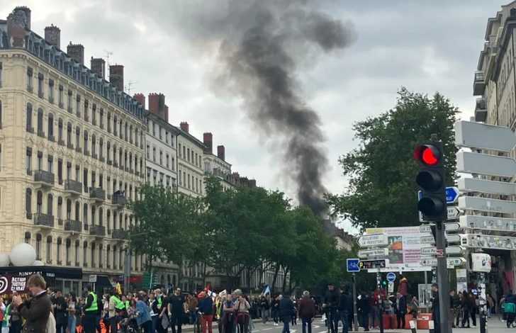 Tri policajca navodno su povrijeđena, a tri osobe su uhapšene. Ukupno je 6.500 ljudi učestvovalo u demonstracijama povodom Prvog maja u Lionu, navodi list.