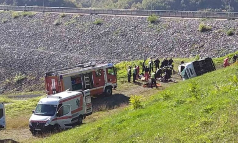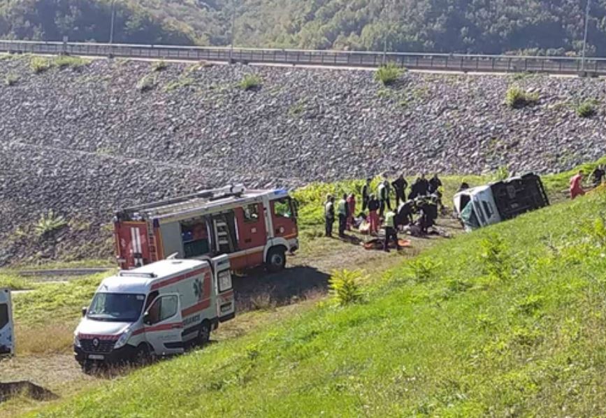 Hitna pomoć prevozi putnike iz prevrnutog autobusa u bolnicu (FOTO)