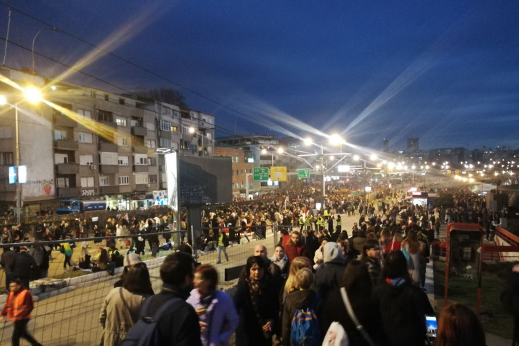Cjelodnevnoj studentskoj blokadi beogradske raskrsnice Autokomanda pridružuje se sve više ljudi iz različitih pravaca koji vode ka tom saobraćajnom čvoru.