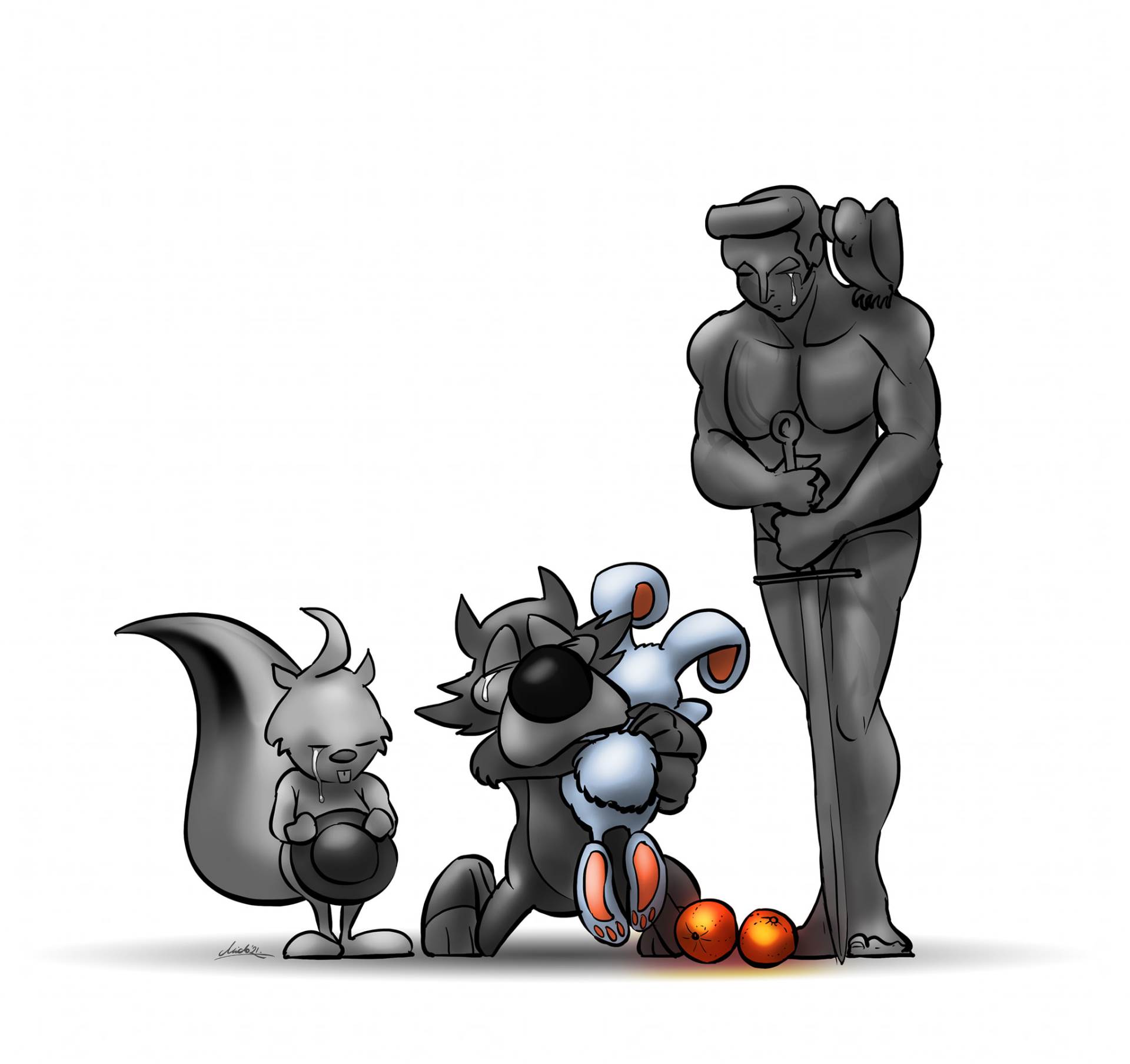Zagi i Pobjednik plaču, dok Vučko grli bijelog zeca.