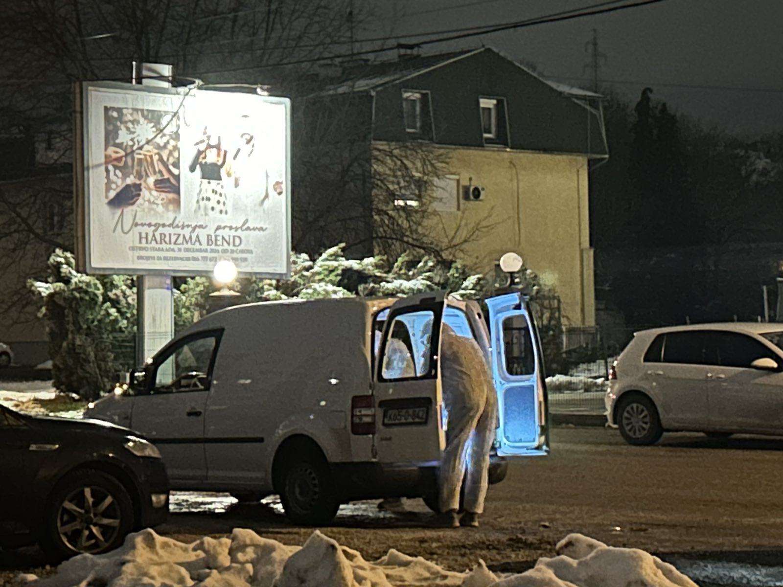 Brojni inspektori, sa baterijama u rukama, detaljno pretražuju parking kod restorana "Stara Ada", gdje je večeras Dejan Kostić Dela, javlja novinar “Nezavisnih novina”.