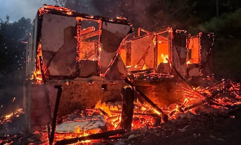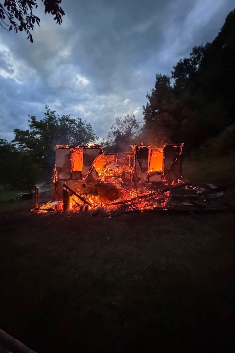Kako su istakli vatrogasci, intervencija je bila u 19.45, a prema fotografijama, kuća je izgorjela u potpunosti.
