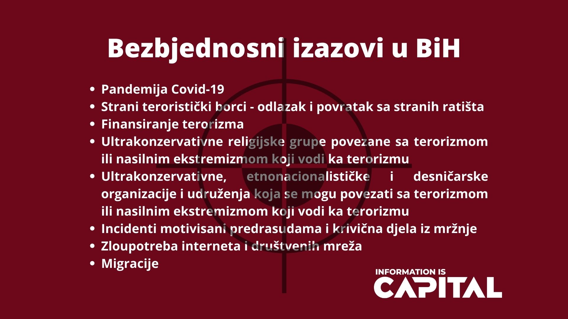 Izvještaj o stanju bezbjednosti u BiH u kojem bi se sabralo, opisalo i upozorilo na opasnosti od terorističkih napada i rastućeg, prije svega islamskog, ekstremizma, Parlamentarna skupština BiH nije dobila na uvid niti razmatrala punih pet godina, koliko je prošlo od posljednjeg koji je predstavljen Zajedničkoj Komisiji za odbranu i bezbjednost BiH.