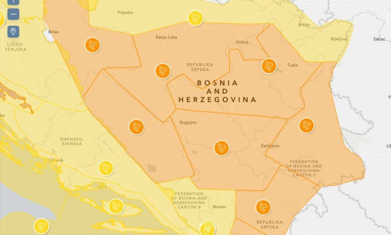 Federalni hidrometeorološki zavod izdao je narandžasto upozorenje za veći dio zemlje zbog pojačanog vjetra.