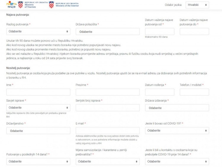 Podsjetimo, u aplikaciji morate, između ostalog, objasniti razlog putovanja i period tokom kojeg ćete boraviti u Hrvatskoj i navesti objekat smještaja.