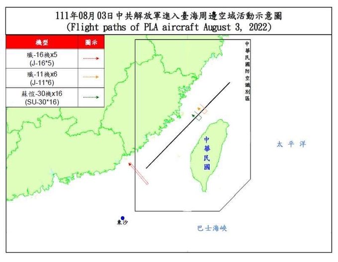 Britanski dopisnik BBC za Кinu Stiven Makdonel objavio je na Twitteru geografsku mapu na kojoj su prikazane lokacije na kojima će Кina izvoditi vojne vježbe, na kojoj se vidi da je ostrvo praktično opkoljeno.