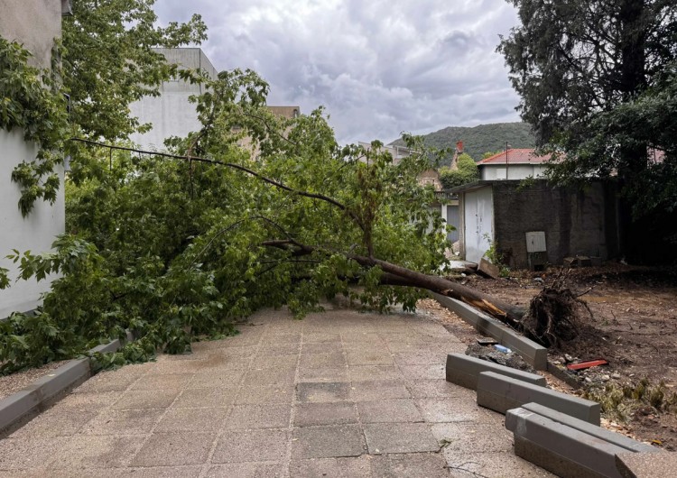 Takođe i grom je jutros udario u drvo na Tekiji u Mostaru, u blizini benzinske pumpe Gazprom usljed čega je velika grana pala na cestu.