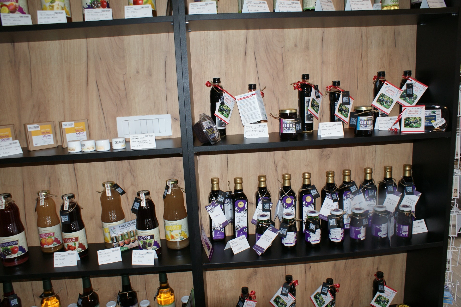 Na sve strane hladno cijeđeni voćni sokovi, pekmezi, džemovi, pčelarski proizvodi, ljuta alkoholna pića, domaće vino, čajevi, tinkture, ali i pivo iz kućne radinosti.