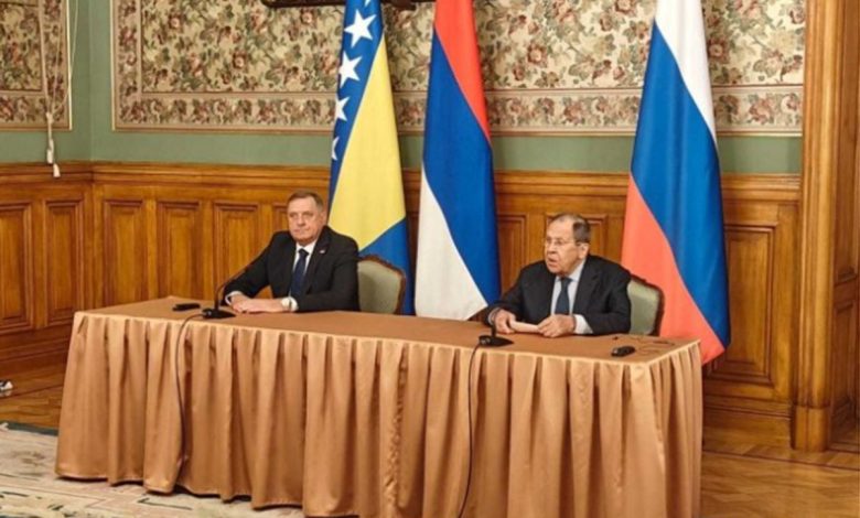 Milorad Dodik, kojem je CIK BiH oduzela mandat predsjednika Republike Srpske zbog presude Suda BiH, sastao se u Moskvi sa Sergejom Lavrovom, ministrom inostranih poslova Ruske Federacije, a nakon sastanka, ruski šefg dilomatije je poručio da oštro osuđuju "pokušaje da se isfabrikovanim slučajevima sa vlasti skinu srpski lideri, konkretno Milorad Dodik".