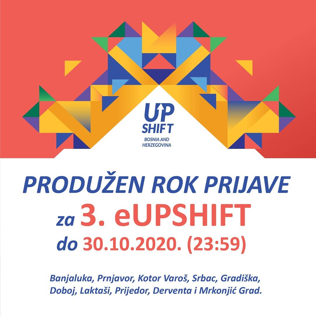 Rok za prijave za treći eUPSHIFT produžen je do 30. oktobra (23:59h), kako bi što više mladih ljudi imalo priliku da se prijavi i sazna za mogućnosti koje ova online radionica pruža.