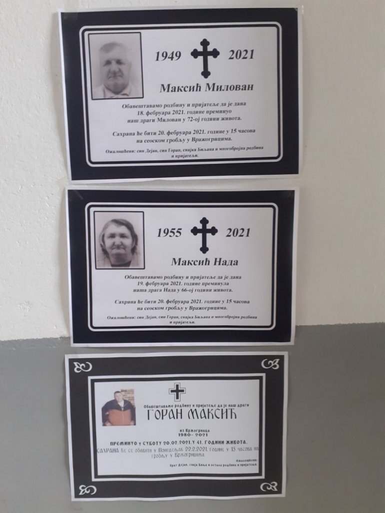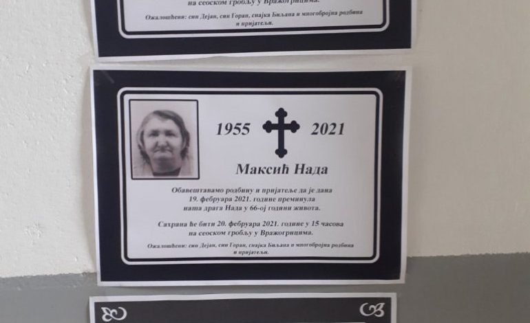 Na lokalnom groblju u selu Vražogrnci, nadomak Aleksandrovca, juče je sahranjen Goran Maksić (42), koji je preminuo od koronavirusa u subotu u kovid bolnici Parunovcu nakon šest dana borbe za život na respiratoru.