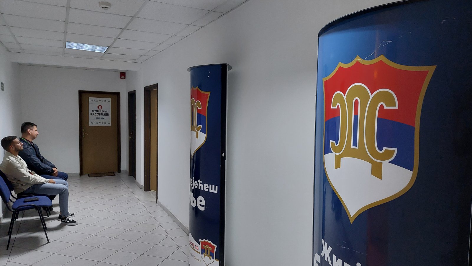 Najteže je ući u štab SNSD. I pored akreditacije novinari moraju da pokažu ličnu kartu i da se potpišu. Ulazak bez lične karte je moguć, ali je potrebno odobrenje "odozgo".