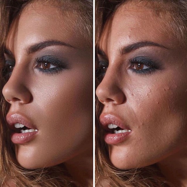 Zbog toga je profil "Beauty False" odlučio da pokaže kako poznate osobe i Instagram modeli zapravo izgledaju. Pokazali su šta se krije ispod svih tih slojeva šminke i kako njihova lica izgledaju prije nego što im profesionalci fotošopiraju slike.