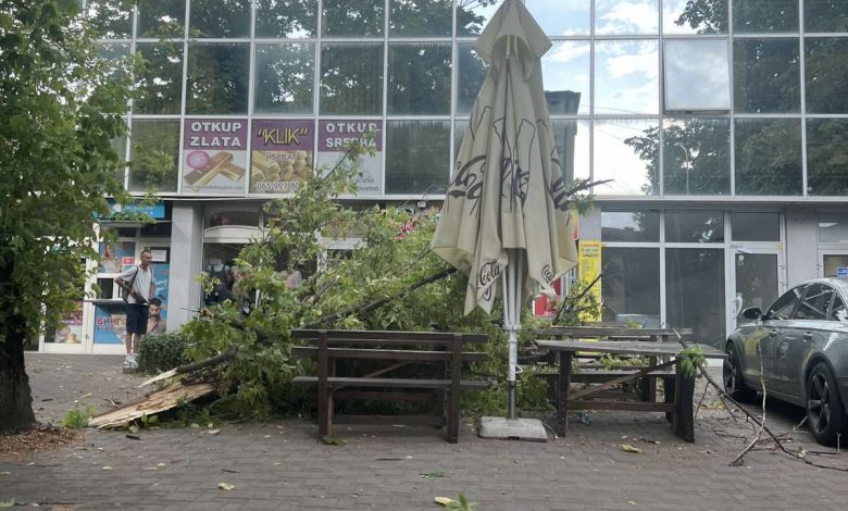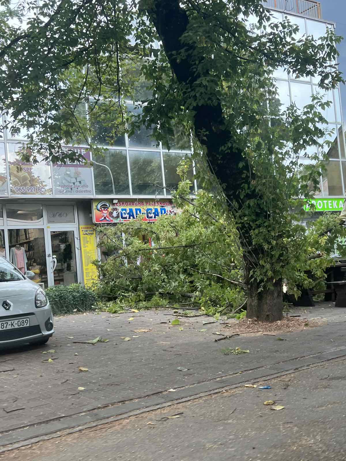 Vjetar je srušio dio drveta na Obilićevu, u blizini Gradskog mosta.