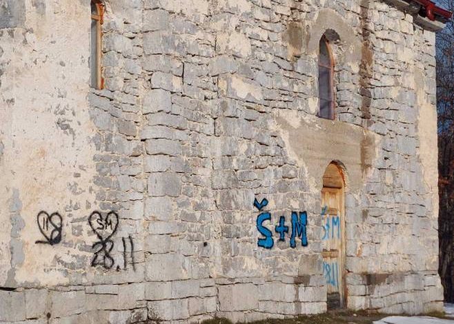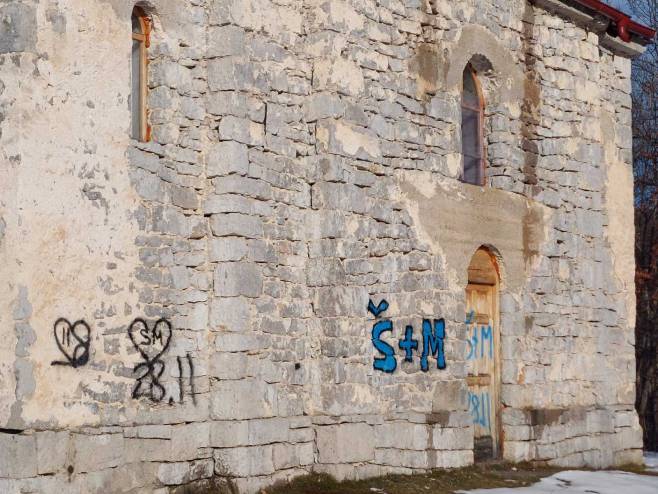 Beganović je rekao da je policija primila dojavu poslije podne i izašla na lice mjesta, navodeći da je na crkvi ispisano pet grafita crnom i plavom bojom.