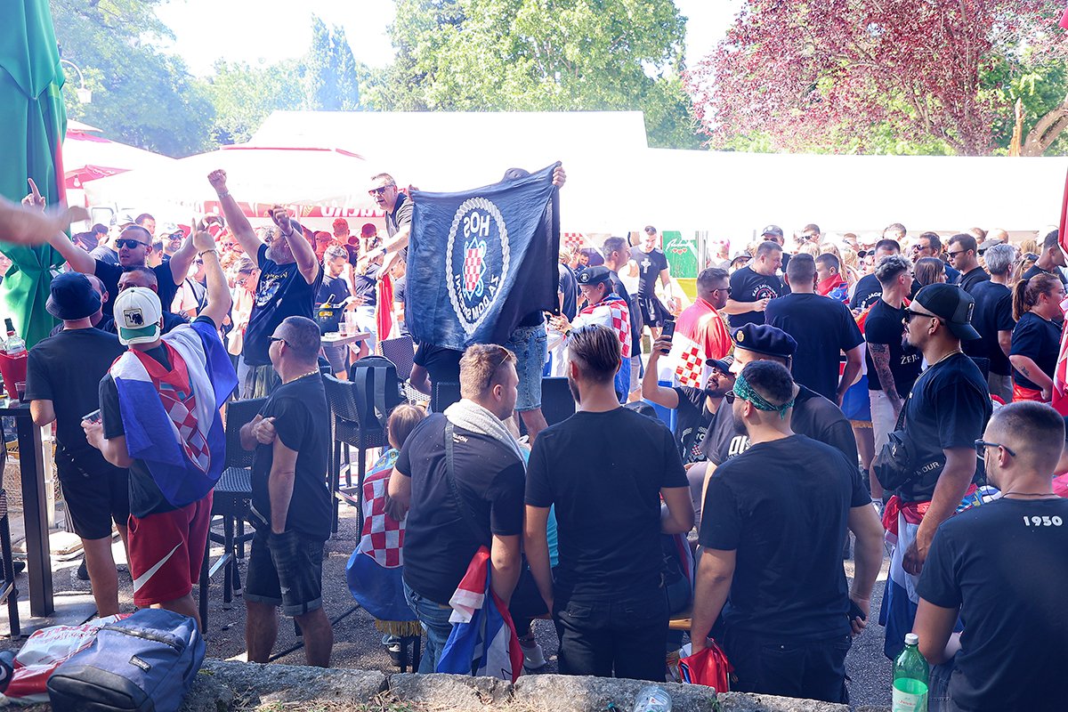 Kako piše Jutarnji.hr čuju se povici "Ajmo ustaše", "Za dom spremni", "Francetiću Jure", desnice, begalke i "Bojna Čavoglave".