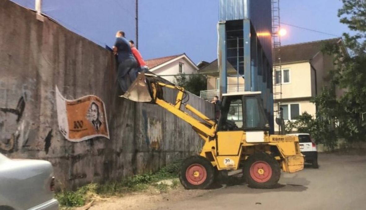 Ušli su u podignutu kašiku malog bagera kako bi iza zapadnog dijela stadiona koji nema tribine pratili i navijali za svoj klub.