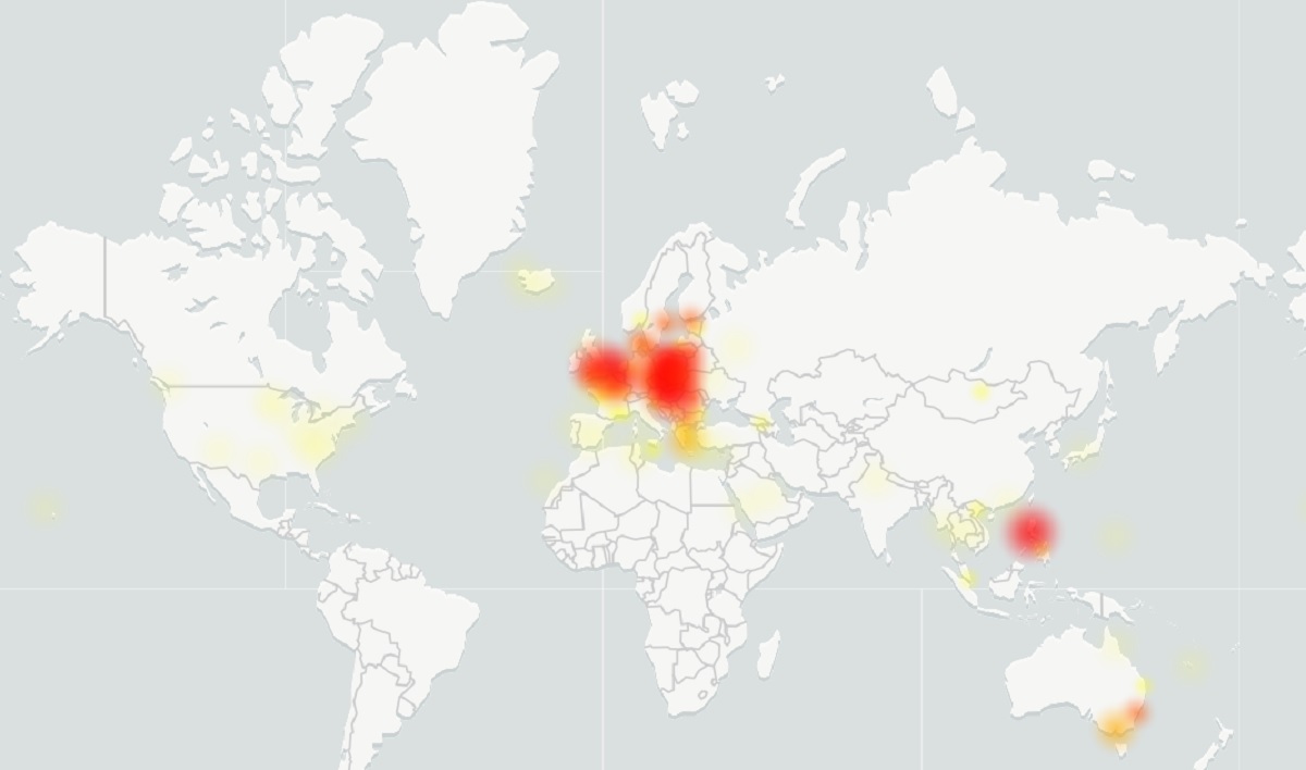 To pokazuje i karta prijavljenih problema objavljena na stranici downdetector.