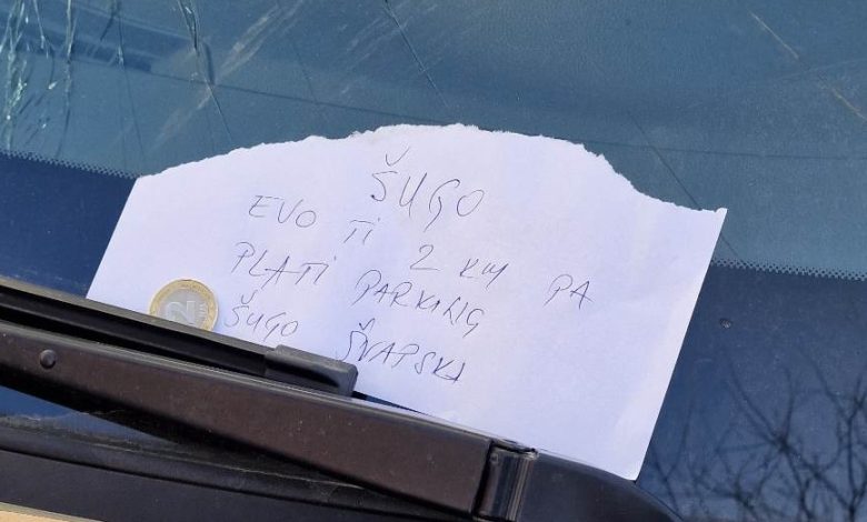 – Šugo evo ti dvije KM pa plati parking. Šugo švapska – i kovanica od dvije marke.