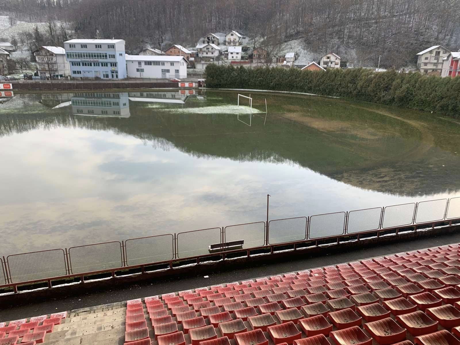 Stadion „Mlakve“ na kojem igra Fudbalski klub Sloboda iz Novog Grada je zbog velikih padavina prethodnih dana i poplava koje su zadesile ovu lokalnu zajednicu poplavljen u potpunosti.