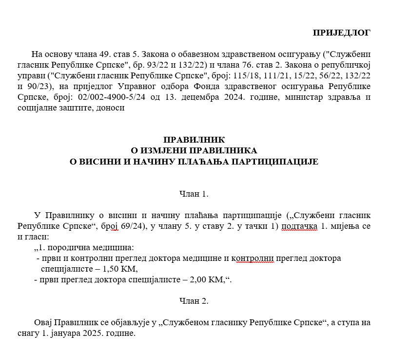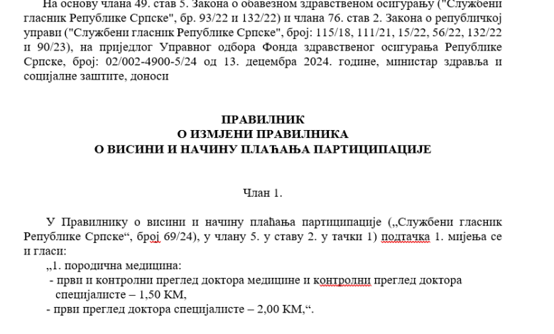 Građani Republike Srpske od 1. januara naredne godine plaćaće skuplju participaciju za preglede kod doktora porodične medicine.
