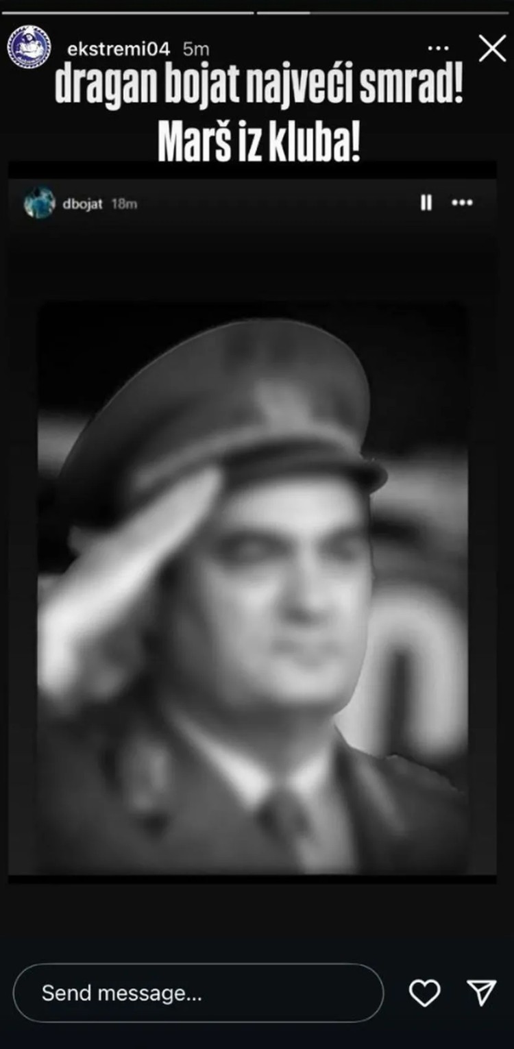"Dragan Bojat najveći smrad! Marš iz kluba!", napisali su oni na Instagramu.