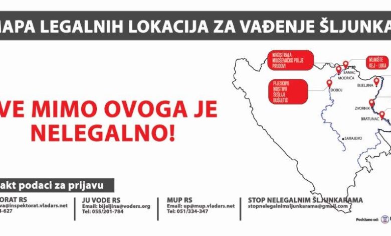 Predstavljene legalne lokacije šljunčarenja u slivovima rijeka Bosne i Drine