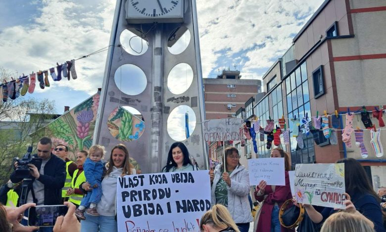 “Ni kiša nas ne može zaustaviti – jer nemamo drugu zemlju, drugo selo, drugu rijeku. Došli smo ovdje da kažemo  dosta je ignorisanja, dosta je trovanja naše vode, zemlje i vazduha”, poručili su  iz neformalne grupa građana “Prijedor se budi”.