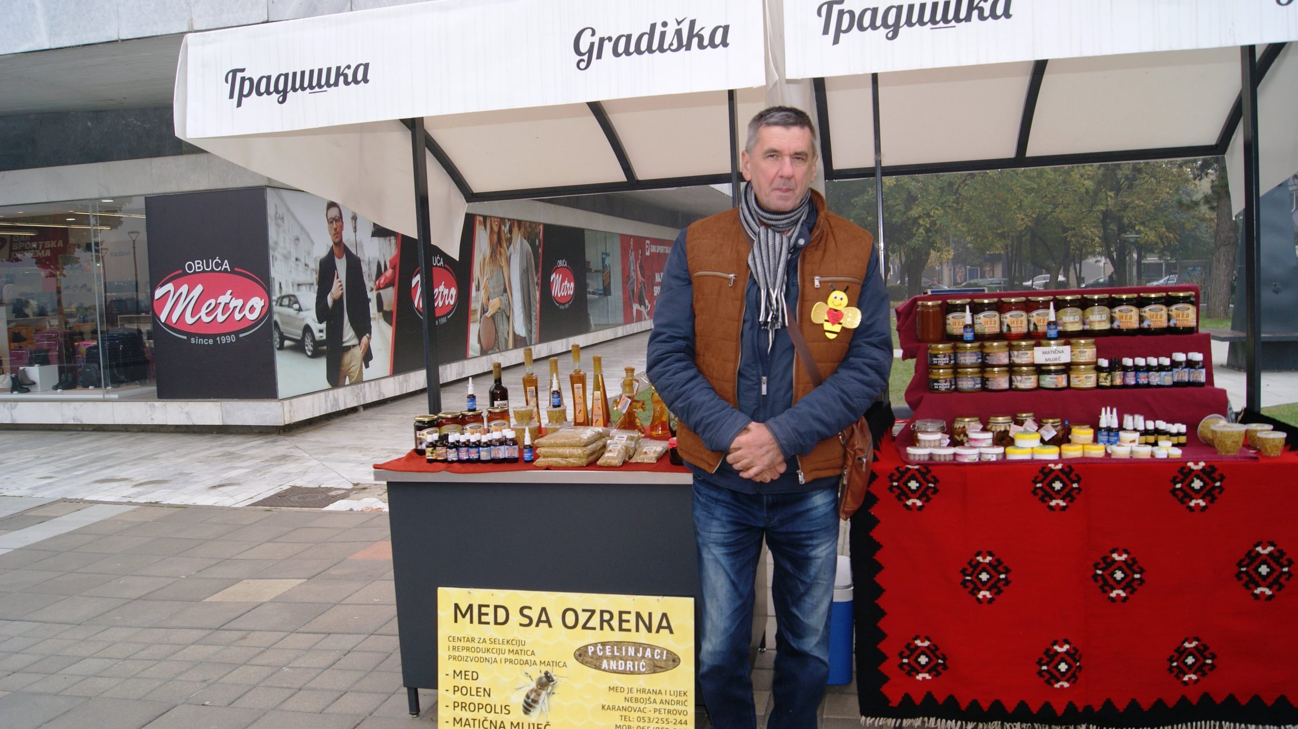 – Imamo 300 pčelinjih društava. Proizvodimo maticu, imamo 500 oplodnjaka. To nam je najrentabilnija proizvodnja. Proizvodimo i rojeve, med, propolis, polen, matičnu mliječ… Pčelarim 42 godine i nisam zapamtio lošiju godinu. Ove godine je prinos bio ispod pet kilograma po društvu, tek za osnovne potrebe – rekao je Nebojša  Andrić, pčelar iz Karanovca na Ozrenu..