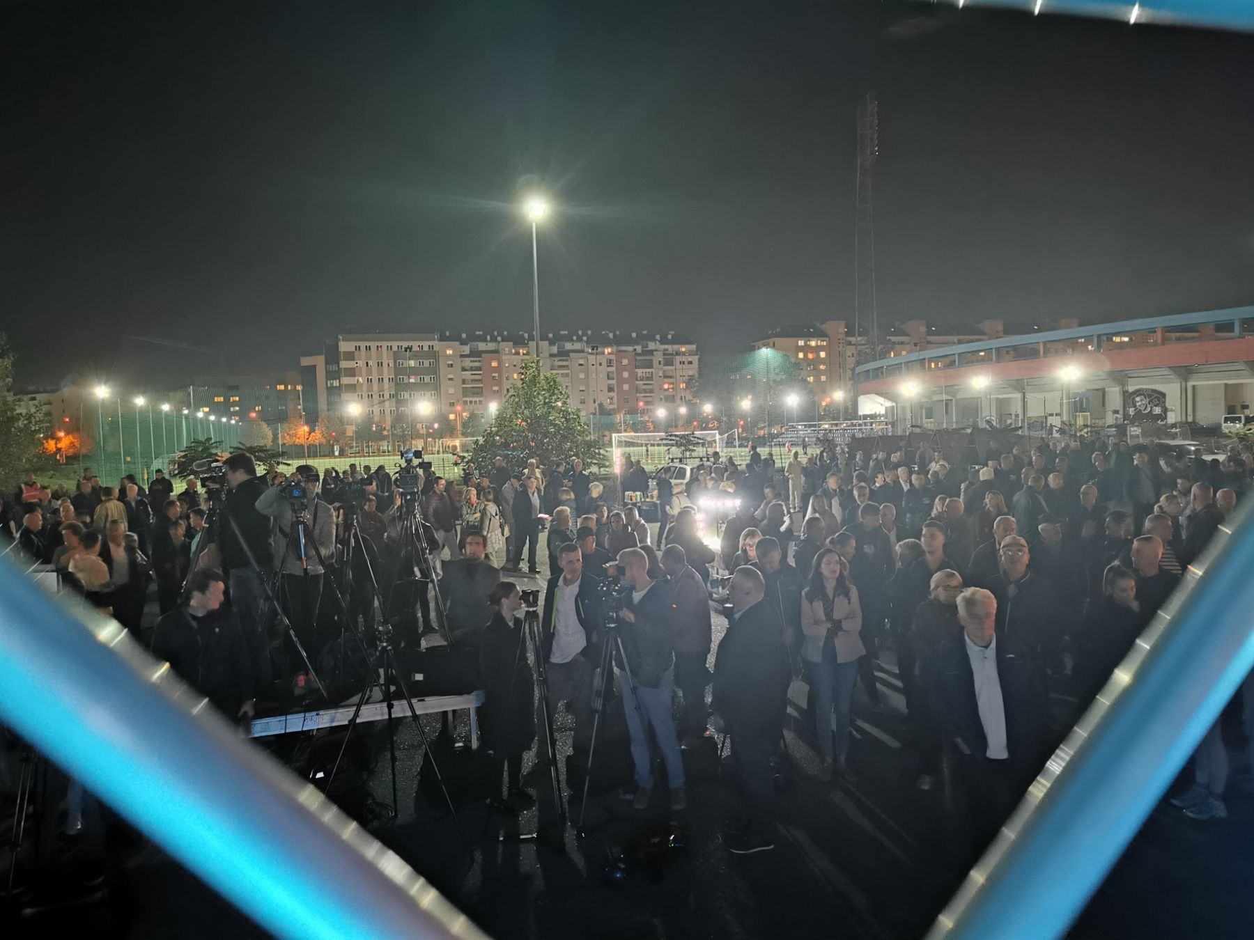 Za sada se ispred zgrade RTRS-a skupilo stotinjak građana koji se i dalje okupljaju. Niko još od lidera opozicije nije stigao jer su na sjednici Narodne skupštine RS.