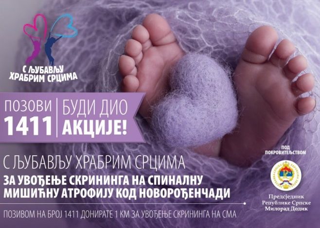 Donatorsko veče “S ljubavlju hrabrim srcima” za uvođenje skrininga na spinalnu mišićnu atrofiju kod novorođenčadi održano je 26. decembra u Banjaluci pod pokroviteljstvom predsjednika Republike Srpske Milorada Dodika.