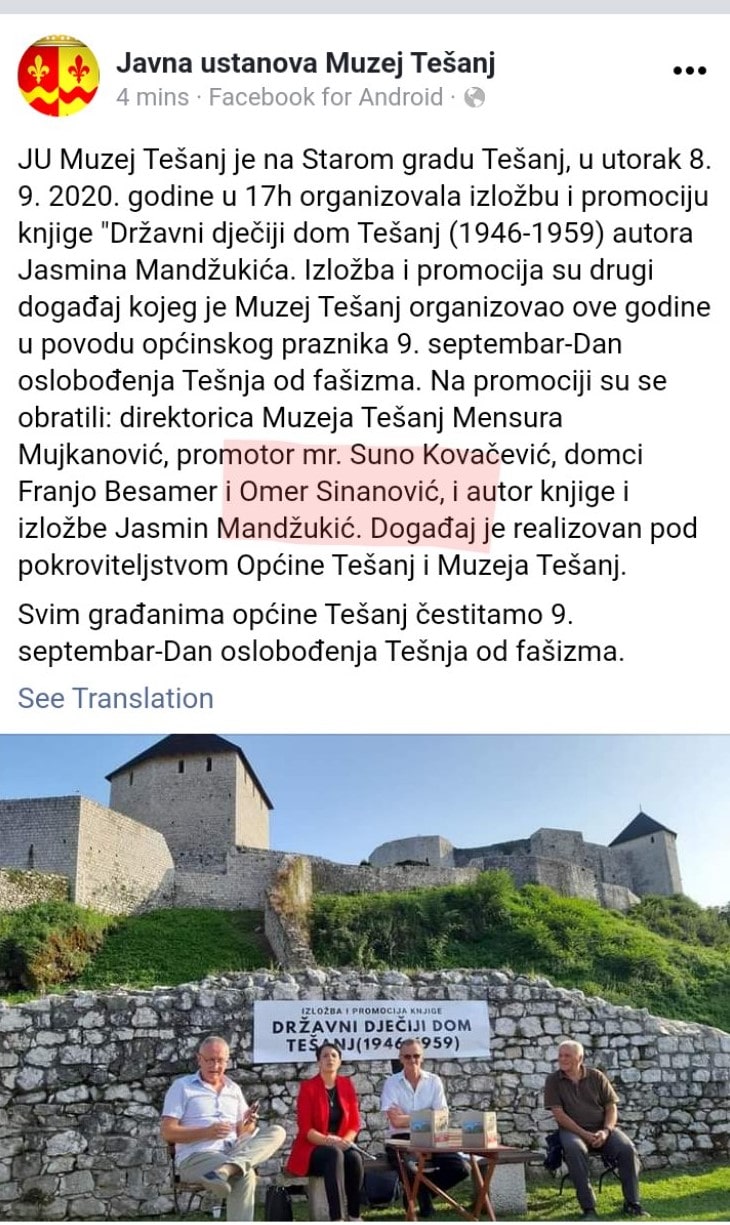 Sada će nam se obratiti Omer Sinanović, nekadašnji pitomac Državnog dječijeg doma ovde u Tešnju!